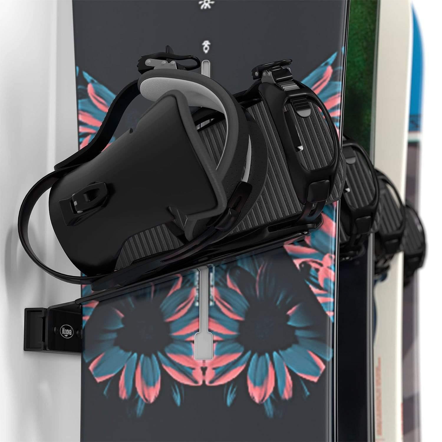 The heavy-duty, wall mounted Koova Snowboard Rack can accommodate up to 4 snowboards with adjustable hangers that allow you to position them where you need them for the best fit. Each hanger is coated with a protective rubber sleeve that will protect the bindings, edges, and surfaces of all your snowboards while keeping them organized. Each Snowboard Rack is made in the USA from heavy duty steel and is designed to last a lifetime.